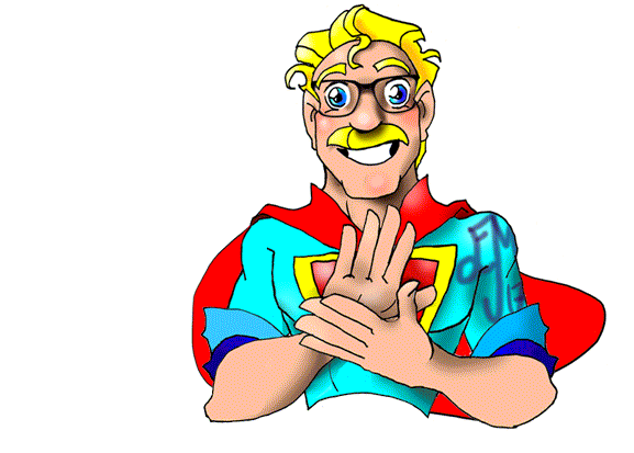 Mapman/Louis Lane (his last name kept changing) was a Superhero character I created for an independent comic at Sheridan College. As a College creation, he seemed the perfect character to illustrate the ASL hand sign for COLLEGE.