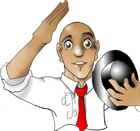 My ASL Dictionary’s cartoon of a handsome man in a shirt and tie lowering his fedora to show the ASL hand sign for HAT.